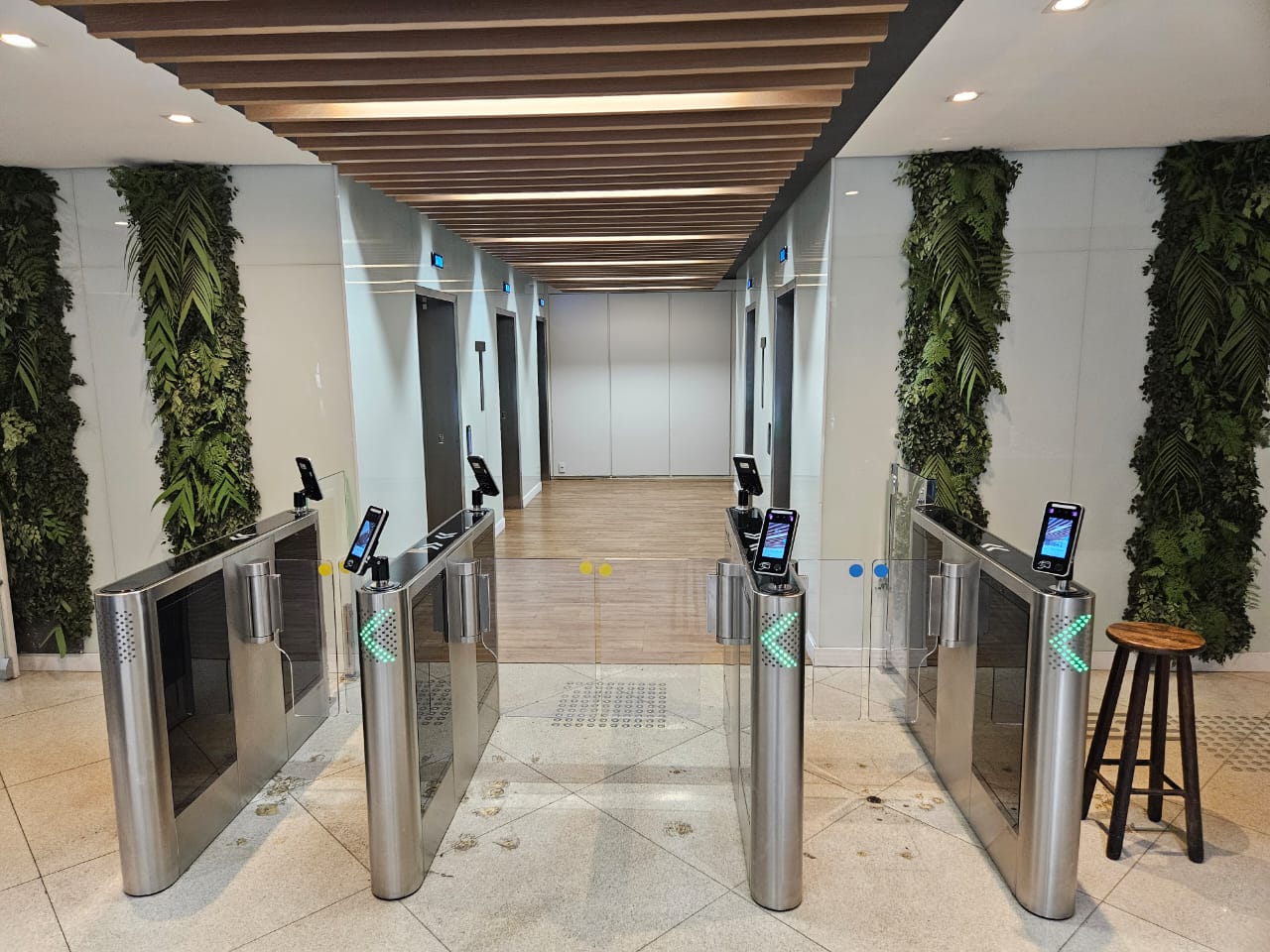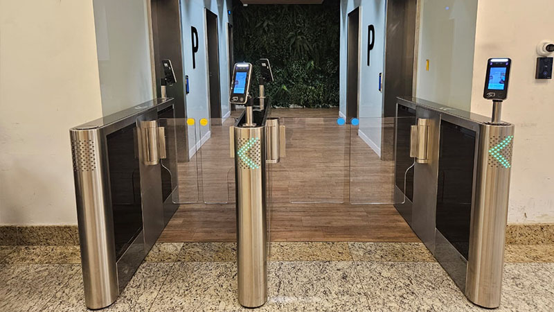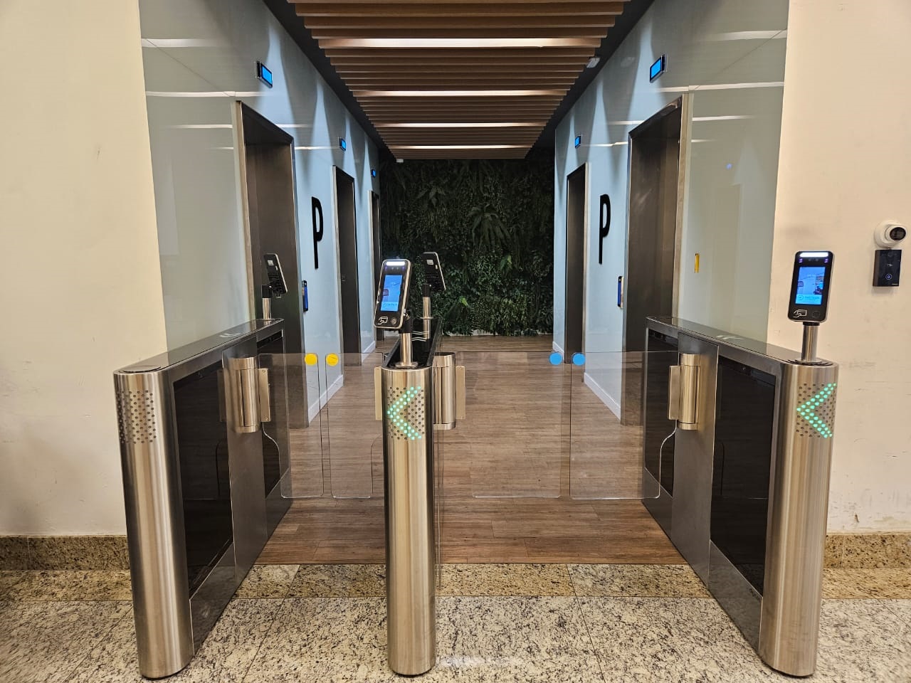 Integração total ao sistema de elevadores inteligentes realizando chamada antecipada para um acesso mais seguro e eficiente.